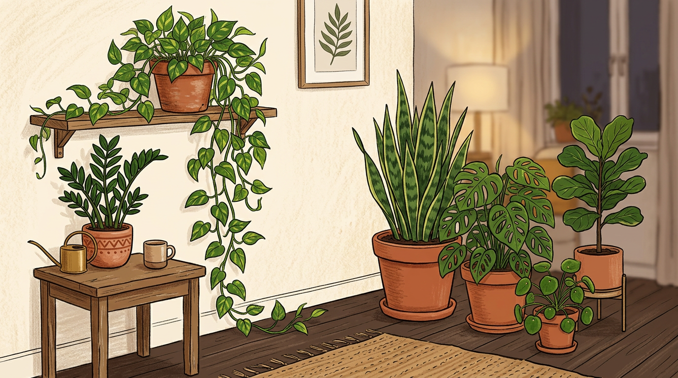 The plants that share your apartment. Low-light survivors, statement tropicals, easy starters, and everything in between.